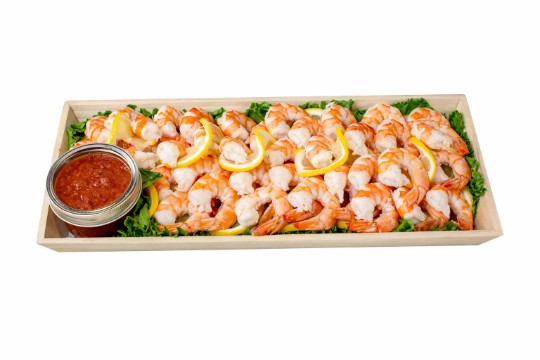 <p>Premium Large Cooked Shrimp (16-20 CT) &amp; Homemade Cocktail Sauce, Garnished with Fresh Lemons</p>