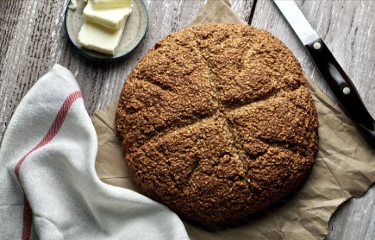 Irish soda bread is well known in name but rarely tasted in its true, traditional form. The Society for the Preservation of Irish Soda Bread insists the real thing includes only flour, salt, baking soda, and buttermilk - anything more is a "tea cake". Enter our oh-so-traditional Irish Brown Soda made with stone-milled oats and local soft white and hard red spring wheat we freshly mill on our own stone mills using both coarse and fine grinds to achieve its distinctive, crunchy bite and whole grain deliciousness. Warm slices with cultured butter are irresistable and it's wonderful with smoked salmon, cheeses, eggs, jam, or lightly toasted, which might be the best way of all!